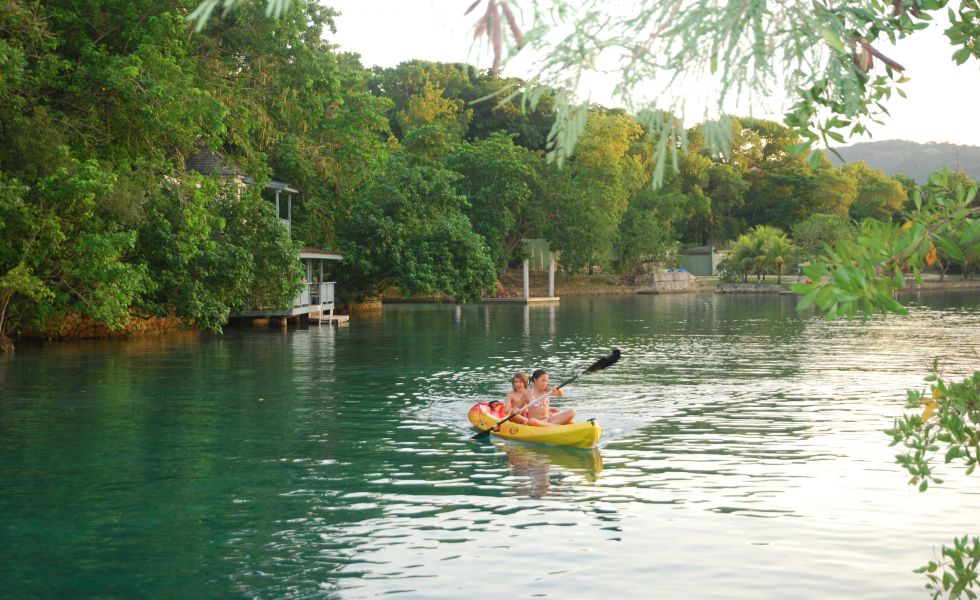 • Kayaking around the lagoon at Goldeneye with my teens whooping and playing without a care in the world.