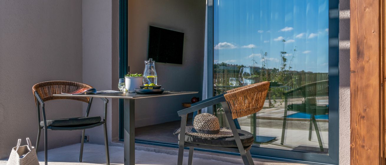 As standard there are 5-star amenities in abundance: orthopaedic mattresses, air con, a furnished outdoor space, fully-stocked mini-bar, WiFi and a super stylish bathroom with luxe amenities.